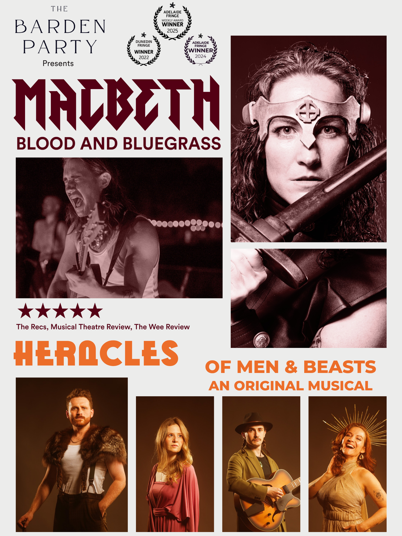 The Barden Party was created in 2021 after COVID-19 led to a constant stream of cancellations in the performing arts industry. Within a month we created a performance to travel safely to people’s own gardens. It became a smash-hit, 50-stop, award-winning tour of New Zealand and a 10-show tour of the United States. Now, four years on, we have performed over 450 times with our 4 musical Shakespeares and 4 original works, having toured 4 countries! In 2025, we won Best Theatre Week 2 at the Adelaide Fringe out of 1400 shows for the second consecutive year and then we ventured to Scotland for our first Edinburgh Fringe. In Edinburgh, our tiny kiwi traveling troubadour independent theatre company managed to receive six 5-star reviews from UK review sites and were named in The Rec’s Top Ten Shows of the Fringe out of 4000 shows. We’re gearing up to head back 2026 in August…. funding and sponsorship permitting!
